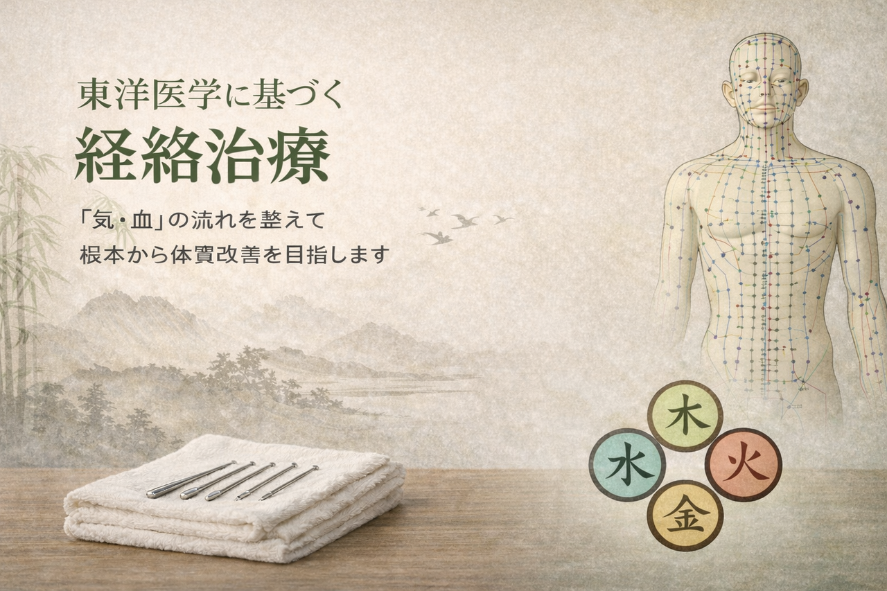経絡治療は、症状が出ている場所だけでなく、全体の流れ(バランス)を整えることで、回復しやすい土台をつくっていく方法です。